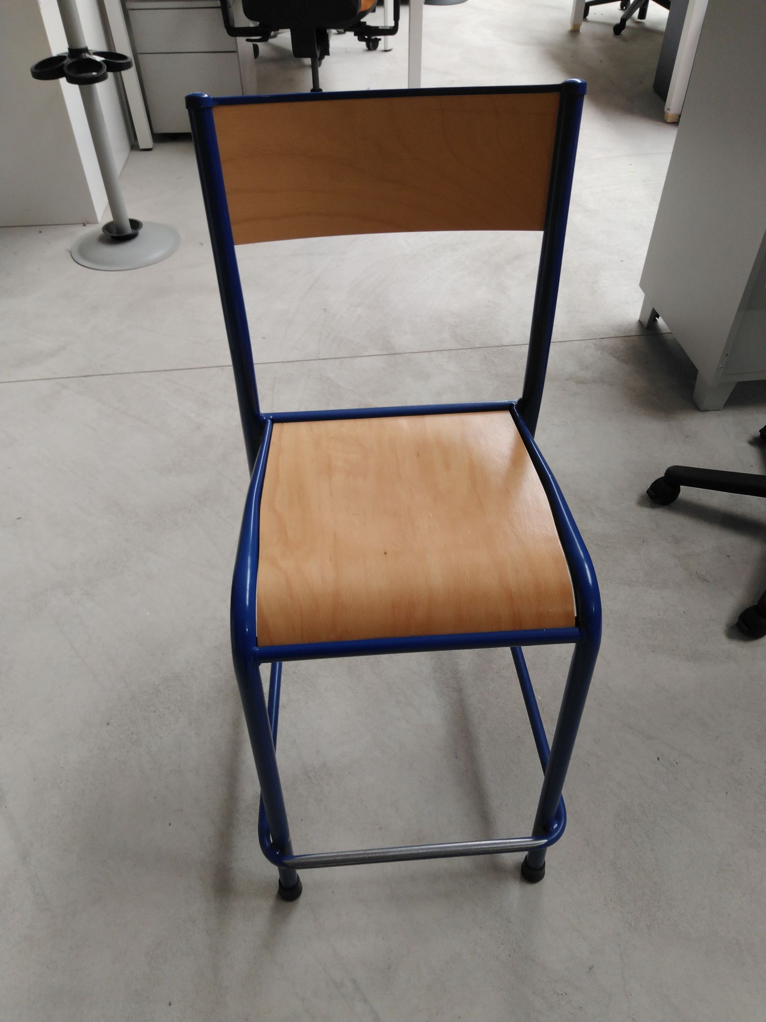chaise haute d’écolier bleue